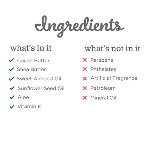 • This creamy and rich lotion contains pure Shea butter, A naturally intense moisturizer for sensitive skin, and vitamins A and E-rich cocoa butter to help reduce the appearance of stretch marks.