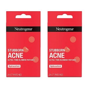 Neutrogena Stubborn Acne Blemish Patches, Ultra-Thin Hydrocolloid Acne Patch Absorbs Fluids & Removes Impurities To Help Pimples Look Smaller After One Use, 2 x 24 Patches, (48 Patches)